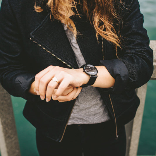 Arvo Time Squared Watch - Black Dial, Black Leather